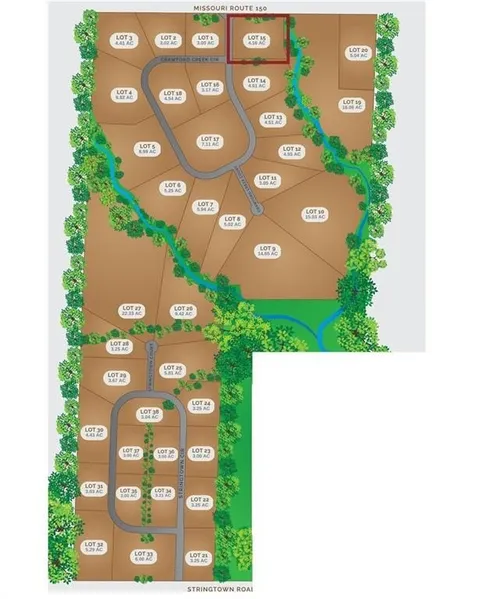 Welcome to Crawford Creek Estates. Jackson Counties NEWEST Premier Rural Acreage Community. Crawford Creek Estates Consists of 236 acres featuring 38 Private Estate sized acreage lots with hardwired broadband internet and 360-degree breathtaking views. These 38 lots range in size starting at 3 acres and vary all the way up to 22 acres and provide the unique opportunity for you to BUY NOW and BUILD LATER. Crawford Creek Estates highlights a variable topography which allows for flat, daylight, and walkout foundations. Running through the middle of this scenic 236 acres includes Crawford Creek itself which showcases its natural beauty with an abundance of wildlife, mature timber, and the comforting soundscape of rural Jackson County. Each one of our lots entail many features to attract a plethora of buyers. This scenic community is included in the Lee's Summit School district, and is just a...