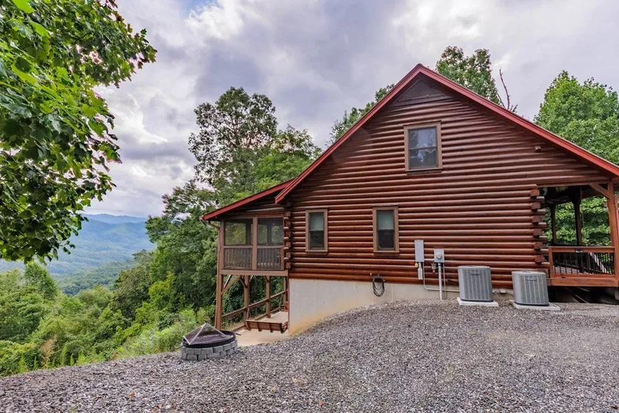 Luxury 2-story, 2,600 sq. ft. cabin in a private gated community with paved roads. Featuring 3 bedrooms plus office/bonus, 3.5 baths, and a walkout basement. Main level offers an open kitchen with custom cabinetry, dining, living room with views, laundry, half bath, and a spacious primary suite with screened porch. Upstairs has 2 large bedrooms and a full bath. Basement includes a livingroom/game room with patio access, bath, storage, and office/bonus room. Wraparound porch, back deck with breathtaking long-range views, and dual driveways with extra parking make this home perfect for entertaining and mountain living.