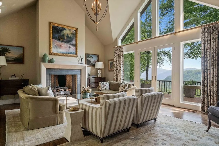 Discover View Point an exceptional retreat tucked away in the serene community of Cedar Hill. This incredible 4 bedroom home spans almost seven private acres, nestled on two lots, offering breathtaking views of Laurel Knob and Cow Rock in the distance and backing up to High Hampton conservation lands. Originally designed by Platt Architecture, the property was expertly renovated in 2016 under the guidance of renowned architect Jim Fox. Inside, you're greeted by a space designed for both comfort and entertainment. The chef's kitchen is equipped with a suite of Viking and Bosch appliances, oversized kitchen island, handmade zinc range hood with antique mantel and warming shelf with heat lamps and wine fridge to make meal preparation a joy. The keeping room provides a cozy atmosphere for gathering with friends and family. Adjacent to the kitchen is the formal living room and dining room, pe...