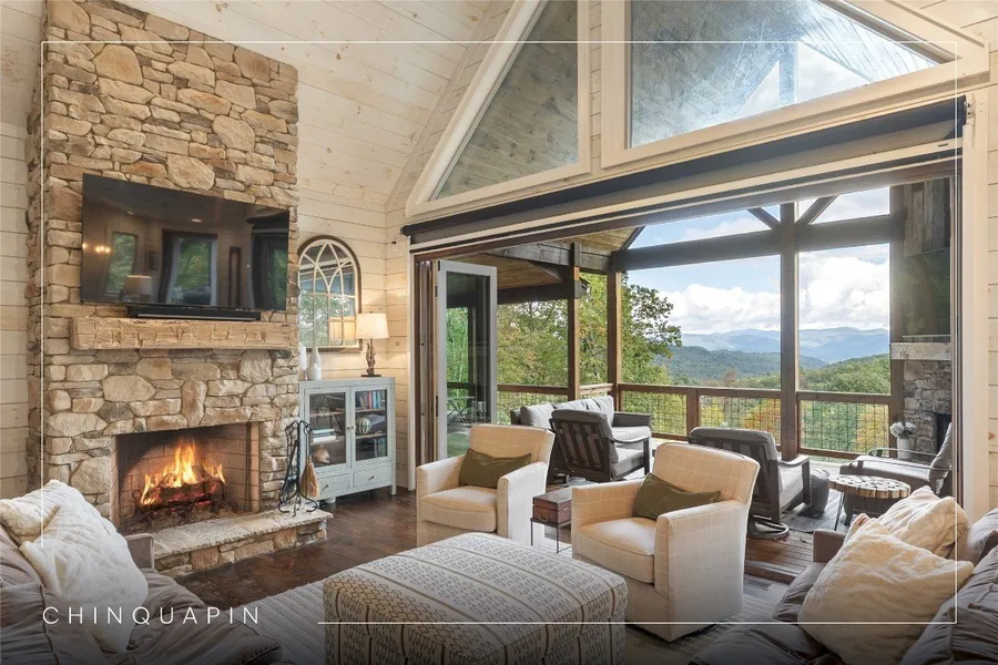 Experience an upscale outdoor lifestyle in the Chinquapin gated community. This home is situated at the end of a cul-de-sac on 3.28 acres with stunning long-range views from its spacious upper and lower decks. On the main level, large folding accordion doors open to the porch, filling the open living and dining area with natural light and beauty. This space features a striking stone wood fireplace, vaulted ceilings, and impressive design elements throughout. The spacious kitchen blends functionality with aesthetics, creating a feeling of openness and connection within the area. The main covered deck is equipped with a grand stone wood-burning fireplace for warmth and ample space for entertaining and dining. Inside, the main level features a luxurious primary suite, while the spacious lower level includes three bedrooms, two bathrooms, and plentiful space for hosting gatherings and relaxing. The lower-level family room opens to a large lower deck with a hot tub - providing further possibilities for entertaining or enjoying the mountain views. The community of Chinquapin offers a perfect blend of social and outdoor amenities while preserving the privacy of a classic mountain home. With miles of trails, pickleball courts, a driving range, fishing facilities, a dog park, and a clubhouse featuring fun social spaces, a fitness room, and a calendar of seasonal parties, there are plenty of activities for everyone. With its spacious porch to enjoy an evening drink after a day of outdoor adventures and take in the stunning long-range views, this property offers the ultimate mountain experience.