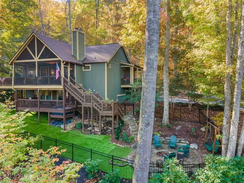 Discover mountain living at its finest in this beautifully updated cottage nestled within the pristine community of Bear Lake Reserve. This inviting home features a desirable split floor plan on the main level, showcasing a spacious primary suite with an en suite bathroom, along with two additional bedrooms and a full bath. The living room boasts vaulted ceilings and a stunning stone fireplace, creating a cozy yet open atmosphere that flows seamlessly into a screened-in porch—complete with its own fireplace—perfect for relaxing or entertaining year-round. The kitchen has been thoughtfully updated with new granite countertops, a stylish backsplash, and modern appliances, adding a touch of elegance to the heart of the home. The lower level offers an additional entertainment area featuring a bar with wine cooler and a third gas log fireplace. A bonus room and full bathroom provide flexibility for guests, a home office, or a hobby space. Step outside to enjoy a private outdoor oasis complete with a hot tub, spacious deck, fenced yard with low-maintenance astroturf, and a firepit—ideal for gatherings, children, or family pets. This home has been extensively upgraded, i