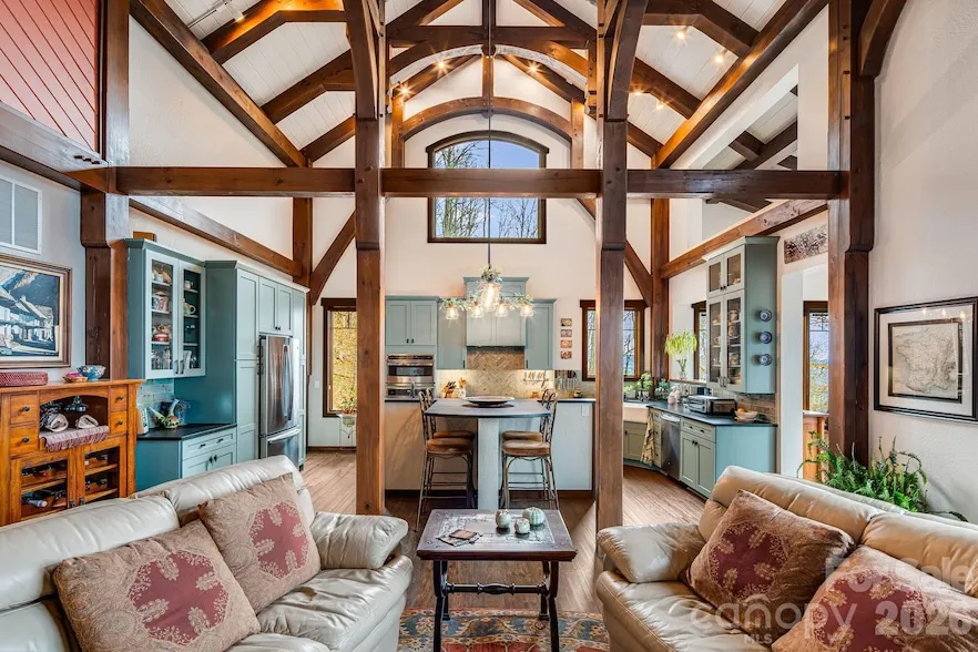 Perched at a rare 4,000-foot elevation and bordering 39,000 acres of Nantahala National Forest, 2223 Scarlet Ridge is a masterfully crafted mountaintop estate where architecture, engineering, and nature exist in perfect harmony. Designed to capture sweeping long-range views while remaining naturally protected from extreme weather, the home offers cooler summer temperatures, dramatic cloud inversions below, and exceptional privacy. This handcrafted timber-frame residence showcases cathedral ceilings, exposed beams, and seamless indoor-outdoor living that reflects both refined craftsmanship and deep respect for the surrounding landscape. Built to endure, the home features superior construction including a reinforced concrete foundation, Structural Insulated Panel walls, fiber-cement siding, high-performance windows, and advanced systems designed specifically for high-elevation living. Mode...