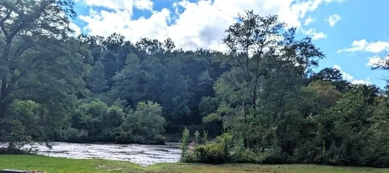 This beautifully furnished 2-bedroom, 2-bath home provides comfortable living on the Tuckasegee River. With modern finishes, thoughtful design, and numerous amenities, it's perfect for both relaxing getaways and full-time residence. The included outbuilding offers additional storage and is 240 sq ft. The property's proximity to local attractions and recreational opportunities makes it an outstanding choice for anyone seeking riverfront living. Close to WCU, Sylva, Dillsboro and Cherokee. Plenty of space for outdoor activities: play cornhole, relax by the firepit, or play in the water, fish or go tubing across the street to a strip of land that goes with this property or in the HOA common area. Currently used as a vacation rental. The kitchen features granite countertops, white custom kitchen cabinets, and an island with sink and dishwasher. Wood ceiling and wood and stone accent wall around the cozy fireplace. Wooden interior doors throughout the home. Primary bedroom includes an ensuite bathroom, double closets, and direct access to a covered porch with river views. Tiled shower extending to the ceiling with a clerestory window for natural light.