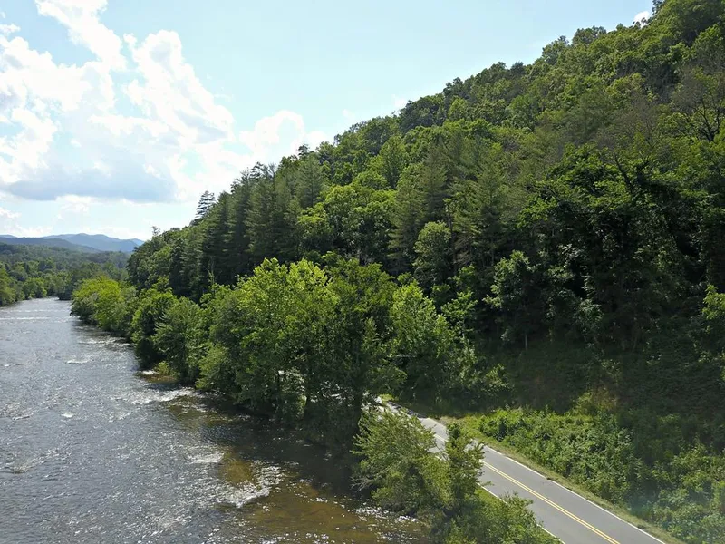 River front property on the Tuckaseigee River, overlooking some of the best trout water in the Southeast. Some roading has been done giving access to multiple building sites. The upper end of the property has long range mountain views AND also views and sounds of a strong river. Property is conveniently located to Sylva , Cullowhee, Webster. and is subject to Webster ETJ, TWSA seweris available. Also includes PIN#7640-57-9049, 7640-56-4598, 7640-56-6722, and a portion of PINs 7640-56-7746 and 7640-56-9834