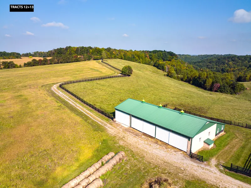 Tract 12: 50.5 ac of an outstanding cattle set up! This tract includes an excellent 5,900 sq. ft. barn as well as perimeter & cross-fencing & a pond providing for a water source.
