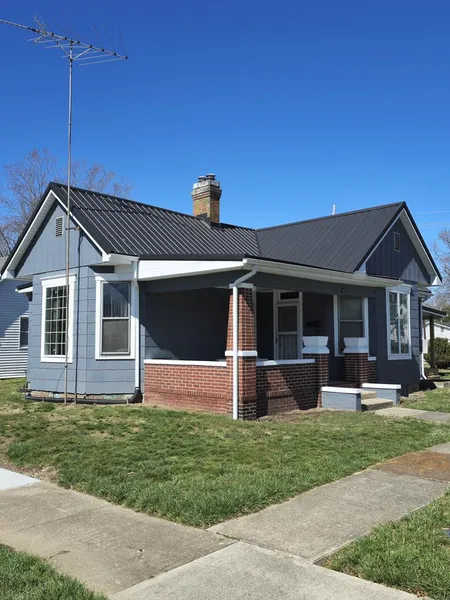 This very well maintained ranch-style home offers a perfect blend of comfort and style. Nestled on a spacious corner lot, this 2-bedroom home features tall ceilings, allowing for an airy and open feel throughout. The fresh paint throughout gives the home a bright and welcoming ambiance. Step into the completely renovated bathroom, where you'll find a luxurious deep bathtub, tile floors, and modern finishes. The full, unfinished basement offers ample space for storage or potential expansion to suit your needs. Enjoy the outdoors on the newly redone back porch. The detached garage with concrete floor, will provide extra storage space, and the updated sewer line offers peace of mind for years to come. With a newer metal roof, this home is ready for immediate possession, making it the perfect place to call home!