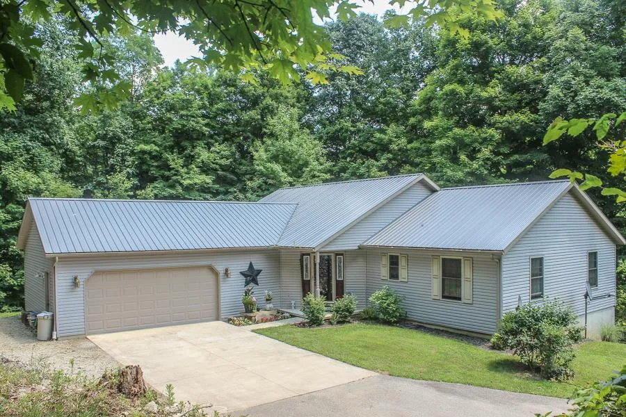 27.487 acres of land for sale in Jackson County, Ohio. Did you ever dream of living in a beautiful tree house in the woods? Here is your chance. Very secluded, out and away from the big town living and all the hustle, bustle and noises that go along with it. The house is 1,545 square feet of living space with a 10x36 covered porch. The house has 2 bedrooms, 2 1/2 baths, tv room, open living room, kitchen and dining, wash room and a full walk out basement.