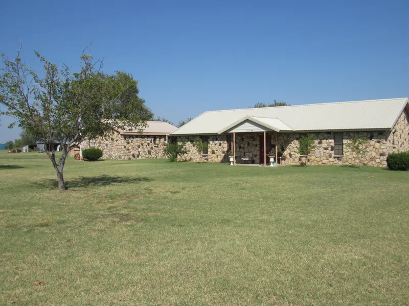3BR/2BA home large living area, eating space in kitchen. Large utility room and farmers bath by the back door. Covered patio-breezeway to detached garage. County water to the house and well water for the lawn. Rock exterior makes for wonderful curb appeal.
