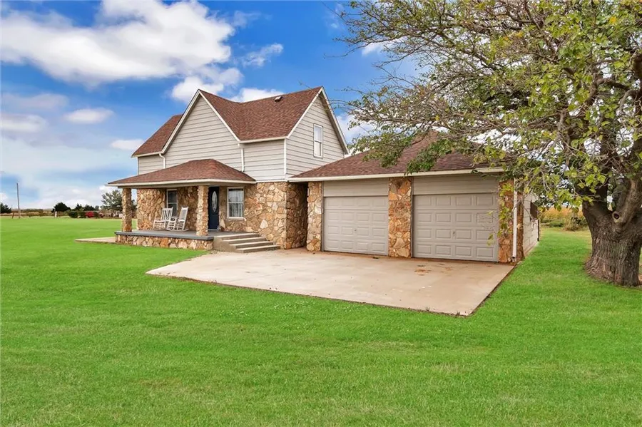 4 bedroom, 2 bathroom newly remodeled 2 story farmhouse on 1.6 acres just a few miles north of Altus! Modern farmhouse color scheme throughout, living room is open to the dining area with shiplap walls, galvanized metal ceiling, and stone fireplace. Kitchen has white cabinets, granite counters, subway tile backsplash, stainless dishwasher, stove & built-in microwave. Master bedroom & full bathroom downstairs with granite counter and jetted tub w/tile surround. Upstairs are 3 additional bedrooms and a half bathroom. Out back, the spacious wood deck is great for entertaining! Detached 2 car garage & storm shelter. Come see!