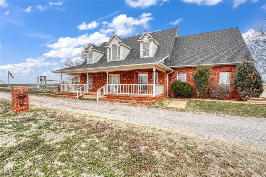 This 4 bedroom 2 and half bathroom home sits on 4.9 acres west of town. This 2,614sq ft home is 1.5 stories with 3 bedrooms and a full bathroom on the second floor. The kitchen gives you plenty of space for prepping and cooking, and has plenty of cabinetry for storage. The living room is open floor to ceiling and has a wood burning fireplace and built in cabinets. The master bedroom has a walk-in closet and a newly remodeled en suite with a huge shower, large soaking tub, tile flooring, sinks and counters. All bathrooms have been recently remodeled. Utility room is a separate room, in the 2 car garage. The backyard is fenced in, there is a playhouse and storm shelter in the backyard as well. There is a 1,512sq ft insulated workshop with two automatic overhead doors, plenty of space for projects, several vehicles and/or space for an RV, boat or any other outdoor toys. The front and back porch are great spaces for relaxing.