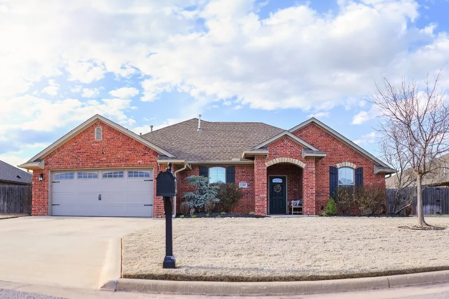 Beautiful Sheryl Home built in 2016 with a large open floor plan, 4 Bedrooms & 2.5 Baths. You're greeted with an established yard with professional landscaping and welcoming entry with stone trim. Crown molding in all common areas, Owner’s Suite & Ensuite. Amazing Kitchen features a large island/snack-bar, granite counters, stone back-splash, a gas stove, microwave, dishwasher and refrigerator. Ceramic tile flooring throughout most of the house and newer carpet in the bedrooms. Large open Living Room with a brick gas log fireplace & beautiful mantle. Owner’s suite features a tray ceiling in Bedroom, a double sink vanity, granite counter, oval whirlpool tub, separate shower, decorative framed mirrors & a huge walk-in closet, equipped with a storm shelter. 4th Bedroom could be an office and has a vaulted ceiling. Hall Bath has 1 pedestal sink & a long granite vanity & framed mirror. Exteri...