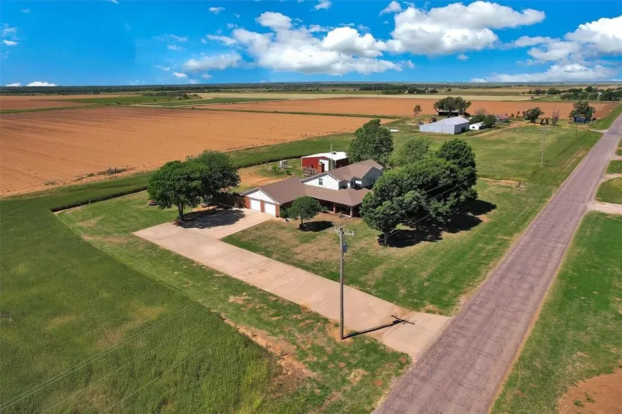 A SHORT 10-MINUTE DRIVE SOUTH OF ALTUS TAKES YOU STRAIGHT TO A MORE PEACEFUL LIFESTYLE! This one owner 1995 custom built 1 ½ story modern style farmhouse sits on one acre and is offering 2963 square feet of living space plus a 600+ square foot double car garage. There are 2 bedrooms and 2 ½ baths downstairs and two bedrooms and one full bath upstairs. The super large kitchen comes with refrigerator, built in oven and range, dishwasher, breakfast bar, some pull out drawers on some of the bottom cabinets and a ton of cabinets and countertops! With a breakfast area and a formal dining area, big gatherings won’t ever be an issue. The open living area has a wood burning fireplace and access to the back patio that has been extended with red bricks from the old Elmer Country Store. The granite columns on the front porch are from the old Elmer Country Drug Store. The oversized laundry room comes with a ton of storage, utility sink, hanging rod, closet, built in cabinets, ½ bath and access to the basement/storm shelter that is appx. 12 x 16 in size. There are two AC units with one for downstairs and the other for the upstairs. Stained oak woodwork throughout including the front door! The walk-in attic access has two separate entrances. Another special feature is the central vacuum system for downstairs and upstairs. The home is all electric with super low electric bills and has a recently cleaned septic tank for sewer and has county water for the home and a well for the yard that has a pump house large enough for extra storage. A 24 x 36 pole barn is also included.