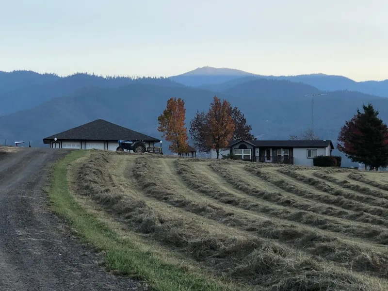 Views, Views, Views. Gated Entry to Home. Farm, Vineyard or Horse property potential. 23 irrigated acres. Enjoy the scenery of all of the Rogue Valley from this benchtop location on the edge of Ashland Oregon. Views include Mt Ashland, Pilot Rock, the Lights of Ashland, & both the Cascade & Siskiyou Mtns. The comfortable 1404 sqft Manufactured Home is beautifully landscaped with terraced brick patios on the front & side, & decks front & back. The detached 4 bay garage was built to house & maintain antique cars. The garage includes a full shop & office with full bath; both being heated by radiant floor heating. Enjoy the home as it is or build your own custom home. Irrigation systems include flood & hand-lines with water delivered by gravity from the Talent Irrigation District (TID). Kitchen Creek flows, most of the year, through property. All of this just a few minutes to downtown Ashl...