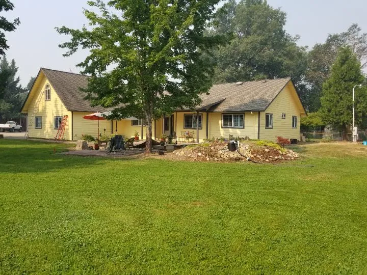 600' Evans Creek frontage, irrigated pasture. 8 of the 10.64 acres is irrigated. New vinyl fencing down the paved driveway and road frontage. The home has been recently remodeled with many beautiful upgrades; kitchen, master bedroom & bath, laundry, floor coverings & more. Enjoy the view of the creek from the new screened in patio. Oversized 2 car garage, detached 4 car garage/shop with power,phone,satellite. RV cover in addition an RV cement pad with sewer hookup & power. Several out buildings for storage and/or equipment, chicken coop. New fireplace, heating system is elec/propane heat pump. This property has so much to offer a must see property. All information is deemed accurate buyer to do their due diligence.