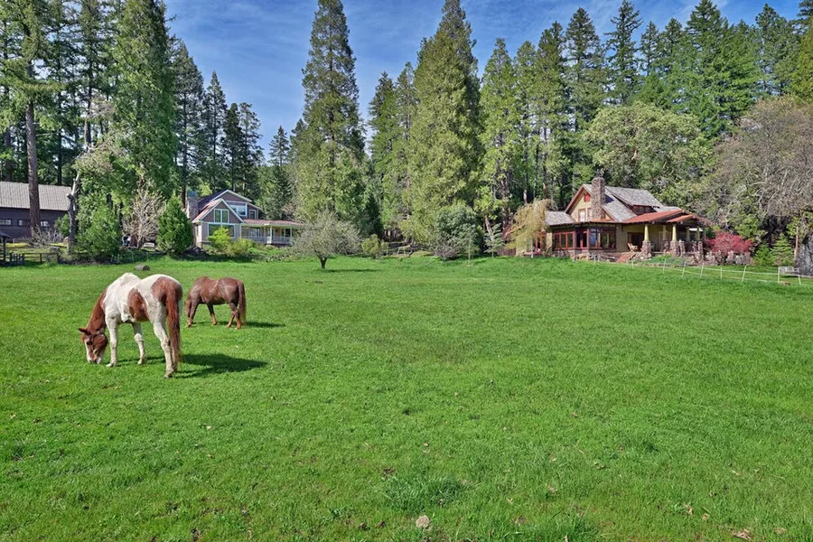 The Historic Katydid Ranch is a private ranch located in a sunny Micro-climate of the beautiful Southern Oregon Cascade Mountains. Two custom homes and a guest house make this stunning property a one of a kind gem. Enjoy a refreshing country lifestyle for a multi-familly homestead, a retreat, or use for vacation rental income. Two custom homes, and charming small-town culture. With two large spring-fed ponds and open meadows, miles of groomed trails, wildflowers and wildlife, duck ponds, protected woodlands, old growth timber,, and majestic mountain views. Unspoiled nature is at its best The ranch is rich with natural beauty and versatility. Endless potential all within your dream’s reach horses and trail-riding, vegetable/herb gardening, a barn-yard farm with your own chickens, multi-generational or two-family life style, retreats for writers, artists, corporate, hosting vacation rentals, raising your own livestock, glamping & camping, conservation interests, summer camps for kiddos or adults, hosting weddings, disc or fling-golf, winter snow fun, fishing in the spring-fed ponds, star-gazing in wide open skies, growing grapes or whatever your dream is made of this is an unmatched setting to fullfill the dream. Abundant water sources make this property ideal for the multitude of wildlife that inhabit it. Elk, deer, rabbits, wild turkeys, and a great horned owl among others are regular residents of the meadows providing hours of viewing enjoyment and often entertainment as well. Not only does Katydid Ranch enjoy a sunny micro-climate which means much less rain than one might expect of Oregon, it also produces a rich and vibrant light environment favored by Landscape and Pleine Air artists. The soil is rich with humus and the south facing meadows are ideal for gardens or vineyards. Offering secluded tranquility yet close to amenities and everyday necessities. Approximately 2.3 miles west of the little town of Prospect (cafes, a charter school, historic hotel, market and country bar), 1 mile to the Rogue River (famous for fishing, rafting and waterfalls), 10 minutes to Lost Creek Lake recreation, 24 miles to the breathtaking Crater Lake National Park. Roughly 50 minutes on the beautiful Rogue-Umpqua Scenic byway, Crater Lake Hwy, takes you to Medford and the Rogue Valley International Airport. The Prospect State Airport used for private jet & charter flights is roughly 3 miles close. PROPERTY FEATURES The gently winding driveway of Katydid Road opens up to your own private paradise of two custom homes, a guest home, workshop, studio, barn and outbuildings. Tranquility, nature, and wildlife abound on this 95.46 acre property. Katydid Home: Opening through the trees you come across the first meticulously renovated custom Craftsman-style Katydid home boasting roughly 3000 sqft of living space. Situated with stunning views of distant mountains and an expansive spring-fed and irrigated meadow. Mature landscaping and fruit trees surround the home and doug-fir framed windows are designed for wildlife viewing. Katydid is a 3 bed, 2.5 bath, American Craftsman home and has been renovated with attention to original detail. The artwork of traditional Craftsman clinker-brick and column stairway leads to the spectacular covered porch and front door. Craftsmanship shines throughout from doug-fir wrapped casement double-pane and transom windows to art-glass lighting, venetian plaster walls, and an art-tiled surround fire place. The Katydid Home is heated and cooled by the earth with full floor geothermal renewable energy providing gentle cozy warmth in colder months and cools the house during warmer summers. Whole-house sound brings favorite music throughout the house and exterior porches as well. A serene and spacious main-level primary bedroom with vaulted ceilings and a luxurious large ensuite bathroom will become your private retreat. The spa-like bathroom with gorgeous dual roll-in showers, a jetted two-person jacuzzi, and two walk-in closets with built-ins, creates the ultimate blend of convenience and tranquility. The bedroom windows are designed for both starry night and meadow viewing. French doors framed with transoms lead to a brick patio. The bedroom adjoins the sun-room through french doors and is situated perfectly to take in an expansive view of meadow wildlife. The living room and dining area charms with 9-foot ceilings, venetian plaster walls, picture rails art-glass lighting and a custom tiled wood-burning fireplace. The spacious gourmet kitchen is perfect for social gatherings and features an 8 ft. island with gas range top and dual oven. Plentiful custom knotty alder and pine cabinetry with soft-close drawers, granite and wood counter tops, a built-in china and linen cabinet as well as a breakfast area create a wonderful work space for comfort and ease. Keeping with the home’s theme, the windows overlook lawn, lush gardens, and park-like woodlands. The unique fresh-air Sleeping Porch is a throw-back to early days when sleeping out of doors was thought to cure most ailments. Today, its a special space for a tranquil good night’s sleep, lazy afternoon nap or morning breakfast. Upstairs, a lovely second and third bedroom are reminiscent of early charm with built in dresser, cabinetry and closets. The unique step-down bathroom features the original clawfoot champagne-length tub, warm tiled floors and pedestal sink. A traditional mudroom with hooks and closet house outer-wear, shoes, hats, and boots for rainy days, and a large flex-room serves as laundry, pantry, and exercise room. The Katydid home is surrounded by beautiful lawns and gardens and is perfect for large family gatherings and entertaining. Meadow Home: The second home the Meadow House is a 2406 ., 2 bed, 2 bath, plus a versatile loft. The fully renovated Craftsman home sits between meadow and woodlands offering a perfect combination of sun and shade for the beautiful wrap-around porch. Upon entering the home, a grand hallw