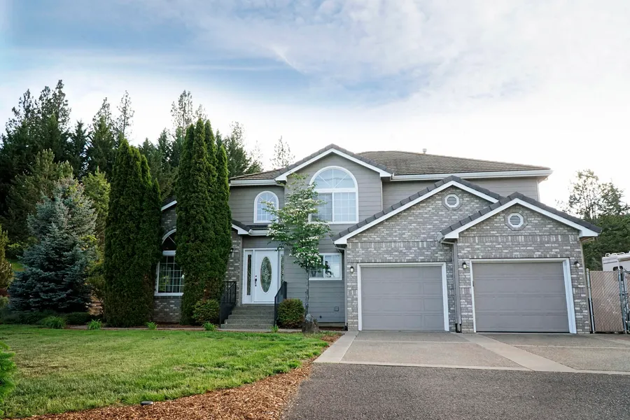 The panoramic views of Mt McLoughlin, Table Rks., and the tip of Thielson, are only matched by this beautiful 2 story on 5.05 partially irrigated acres. This has everything you could want in a home. As you come into the formal entry, a Loretta Young staircase awaits your arrival. To begin, everything has been updated and replaced, from the door hinges to the light fixtures to all the fixtures in every room to the interior fresh paint. New bamboo flooring has been professionally installed thru out w/new carpet on the stairs and upstairs hall. It features a formal living rm with a vaulted ceiling, sky lights and ceiling fan with the formal dining having French doors to the back patio. The open, convenient kitchen has a bay dining area, an island opening up to the lg family rm that has lots of windows, a fireplace w/bookshelves, and access leading to the backyard patio and the inviting ingr...