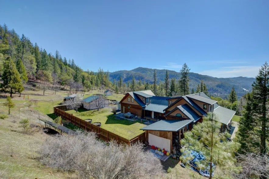 Welcome to the vista of vistas! Make this tantalizing 5 million dollar view part of your daily life! This 3262sf home lives to take in the environment at every corner. The bathrooms with jetted tubs/showers, heated floors & a suite with a multi-jet Maya steam shower! The warmth of the extensive luxury Blue Pine log beam features throughout, show the pride of which it was built. Graced with a steel roof, 4 Debella gable windows with a 50-yr warranty, & 40 Solar panels! The property also includes a 16x24 shop, a 12x12 shed, wood shed, chicken coop, vegetable garden, grapevines, & a heated-floor greenhouse all inside a fenced area. Included is a high-quality water system & extra tanks for storage and to water the orchard, which grows many fruit trees and a berry patch. Includes a 40x64 steel building that just needs to be built. Enjoy panoramic views & seclusion on this 20.33 acre property which abuts 25,000 acres of BLM land! Medford International airport is 24 miles away. Call today!