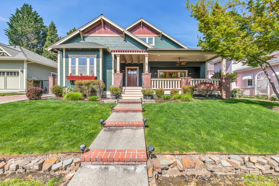 Nunan Square in Jacksonville is a delightful community to call home, and this home has much to boast about. Built in 2001 this abode was extensively remodeled and expanded in 2008 with main home featuring island kitchen, granite counters, stainless appliances and soaring 20' ceilings. Step into the spacious living room with coffered ceiling, gas fireplace and french doors leading to the amazing front deck. This is where the fun happens with great indoor/outdoor living. The primary bedroom is on the main floor with a walk-in closet, 10' ceiling and crown molding. Out back is a fully furnished, detached studio ADU which is great for guests or income. Below the ADU is a party/entertainment/hobby room; the uses are many and varied. Only a few homes in Nunan Sq. have ADU's so this is a real treat. Walking distance to downtown and Britt Gardens, the location is premium in JV.