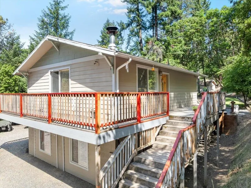 Experience the serenity of country living in this charming two-story home set on 3.24 acres. Peaceful and quiet, with abundant wildlife, it sits just above the fog and inversion layer, only 10 minutes from historic Jacksonville or Medford city limits. The home boasts an open kitchen, plenty of windows, and a spacious bathroom with a jetted tub. Take in stunning sunsets from the wraparound decks, enjoy the terraced backyard, a 12x12 storage shed/shop, and ample parking. Established trails lead to BLM land. Endless potential and possibilities. Motivated seller willing to consider all offers.