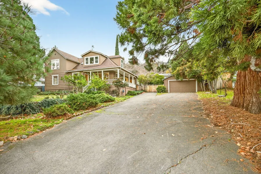 Freshly renovated turn of the century home set on over a third of an acre lot with views and gorgeous mature evergreens. Large covered wraparound front porch leads to the front facing living room w/ wood floors & picture windows allowing for an abundance of natural light. Spacious country kitchen has stainless steel appliances. There's a covered enclosed back porch style room w/ bathroom. There are two bedrooms, one of which is ensuite on the main level. Versatile upstairs space has a light filled landing, one bedroom suite and another huge space w/ great architectural features, views and a full bathroom. Plus, a detached oversized two car garage, lots of parking and a relatively level yard that has a ton of potential for gardening or future development. Just above the hospital and within the Health Care Services zoning district. This is a charming property awaiting the next owner to enjoy!