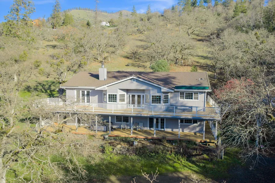 We have cherished our time in the heart of Applegate Valley & this home has been the backdrop for many special moments. Starting w/the custom design, the spacious kitchen w/solid cabinetry where meals & conversations came together. The large living room, centered around a 2-sided fireplace, has been a favorite gathering place w/French doors to the expansive new deck, making indoor/outdoor living effortless. The main level offers 2 comfortable primary suites & a built-in dining area just off the kitchen. Downstairs features a second family room, 2 BRs, & a full bathroom--ideal for entertaining friends & family. We've spent countless hours on the upstairs and covered downstairs decks, enjoying mountain views & peaceful surroundings. One of our greatest joys has been caring for our private vineyard with 220 grapevines of Pinot Noir, Pinot Gris, & Syrah on a drip system. W/a gated entry, 2 c...
