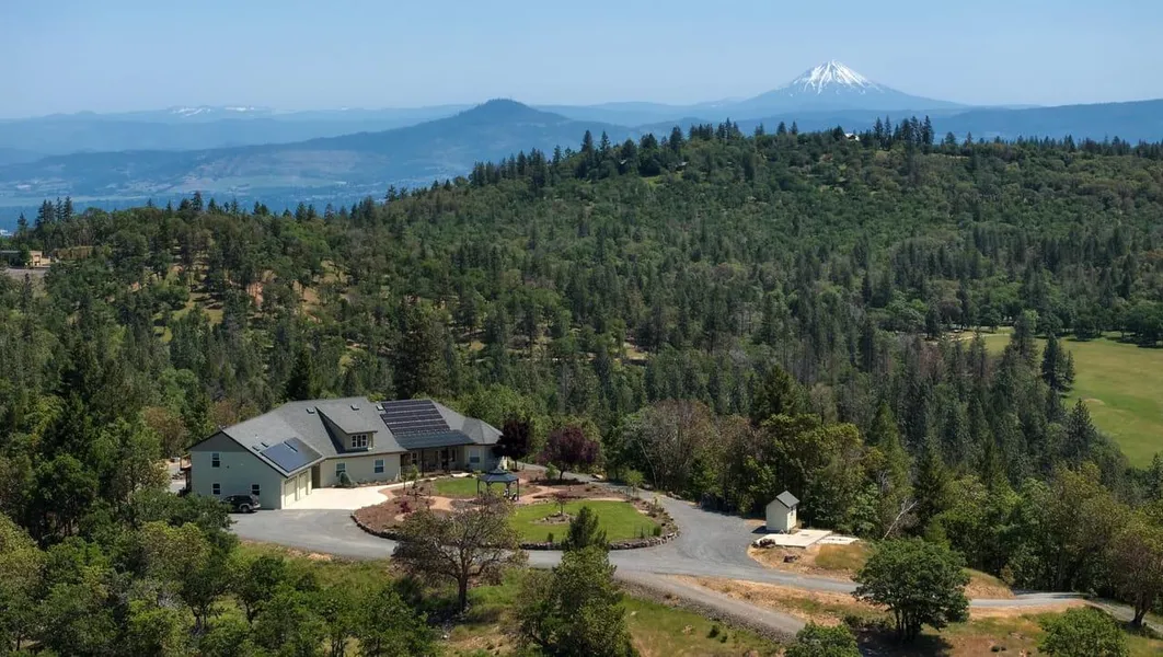 The 5938 square foot home has four bedrooms and 3 full baths features high end finishes and appliances to complement a thoughtfully planned design. The hilltop privacy afforded by the location will make you feel as if you're nestled in a remote region while at the same time the quaint and historic town of Jacksonville is less than a three mile drive away. The estate features 89+/- acres and includes a wooded knoll gently sloping to open pasture land. 18 of the acres are irrigated with water rights. Zoning for the property includes EFU and WR.