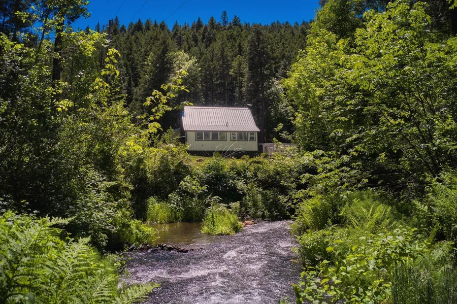 Waterfront home on acreage in southwest Oregon. Here's what you've been looking for. Twelve acres with live water, pasture, timbered mountainside, home and pole barn. The cozy 776 sq ft home is nicely appointed and features two bedrooms and two bathrooms. Little Butte Creek runs year round through the property. The home sits at an approx elevation of 2840 ft on a level portion of the property and adjoins thousands of acres of Federal land and is located in the Rogue Hunting Unit. The pasture is covered with lush vegetation and the creek bottom is shaded and private. The vegetable garden with a small greenhouse is situated to receive plenty of sunlight. The timbered hillside has a healthy mix of evergreens. Driving distance is 28 miles to the Rogue Valley International Medford Airport. The Rogue Valley is the regional commerce center for SW Oregon along with regional medial facilities.