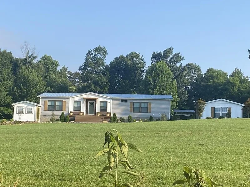 Come experience this private Outdoor Retreat and escape to your own 42 acre paradise with rolling hills, ravines, riding & hiking trails, waterfalls, and abundant wildlife. Built in 2023 on a permanent foundation, this 3BR/2BA Energy Smart home is like-new and move-in ready, featuring 2x6 ext walls, double-pane windows, full smooth-finish drywall, upgraded insulation, stylish metal roof, a large kitchen, formal dining, spacious laundry/pantry, and transferable 5-yr warranty. Enjoy resort-style living with a pool, hot tub, fire pit, extensive decking, pergola, and beautifully landscaped grounds. Property also includes a detached 2-car garage, water treatment shed, chicken coop and dog kennel. Bonus features: HE washer/dryer,kitchen appliances and blinds all stay! Ideal for hunting, gardening, or homesteading. A rare find in a growing area with a small-town feel! High-speed fiber optic cable/internet and a private well.
