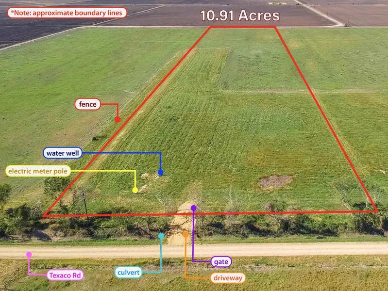 Additional Details: Ganado is located in Jackson County, about 95 miles southwest of Houston, 140 miles southeast of Austin, and 150 east of San Antonio. Farm and level, flat land. Mobiles, horses, and cows OK. Quiet dead-end road. 607 feet road frontage on CR 227. Appears to be in flood zone AE. Boundary and fence outlines are approximate in photos. Seller will finance. Survey is in attachments. Water Well provided by Texas Southern Drilling LLC.