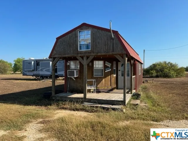 Cozy vacation cabin perfect for fishing or family getaways, featuring a front porch, AC window unit, kitchen with some storage, bathroom with shower, bedroom area with closet, and an unfinished loft upstairs for potential additional square footage. Sold as-is with no furniture or appliances included, priced accordingly for the lot and cabin. Start your adventures here!