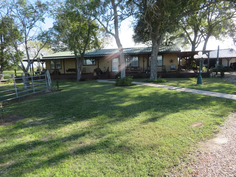 Great multiuse 38.51-acre ranch with a Palm Harbor doublewide with all the upgrades possible, perfectly maintained and updated, in the sought-after Industrial School District. This 2048 sq ft 3 bedrooms, 2 bath home is super solid and has an office, dining room, huge kitchen with appliances that stay, and an inside laundry room. The master bedroom and bathroom is perfect with walk in closets, double vanity and separate tub and shower. The huge wrap around porch made of quality treated lumber gives many options and uses to enjoy no matter what wind direction! Big mature shade trees surround the home, and the yard is fenced. There is a 2-car concrete floored garage next to the home, and a spacious driveway accessing everything. The 45' x 45' barn is on a 60 x 60 concrete slab and there is a great Fun room/ guest house on the South end of the barn. This barn is perfect with work benches, storage , lighting, and even has a kitchen in the corner. 3 big bay doors and the front is a big car, truck parking area. There is a 2017 RV Camper that can stay as part of the sale. A big well-built RV shed is on the side of the barn where there is also a decretive entertaining area with outdoor tables, chairs, and landscaping that stay. The 35-acre pasture is clean of brush and weeds and has been the home to a 15 cow/calf ranching operation. There are 3 cross fenced pastures, a loafing trap, and a set of cattle working pens. There is a pond that can be filled by the nearby water well for swimming! There is so much to see, and everything is smartly done with quality in every detail. This property is very close to the Frels Landing boat ramp at the Lavaca River which is navigable by deeper draft boats an provides awesome year-round fishing. Also close by just down 426 is the famed Lavaca Bluffs Winery! You really have to come see this resort like country property with all its improvements. Come homestead here with your family and enjoy country living with everything ready to go!