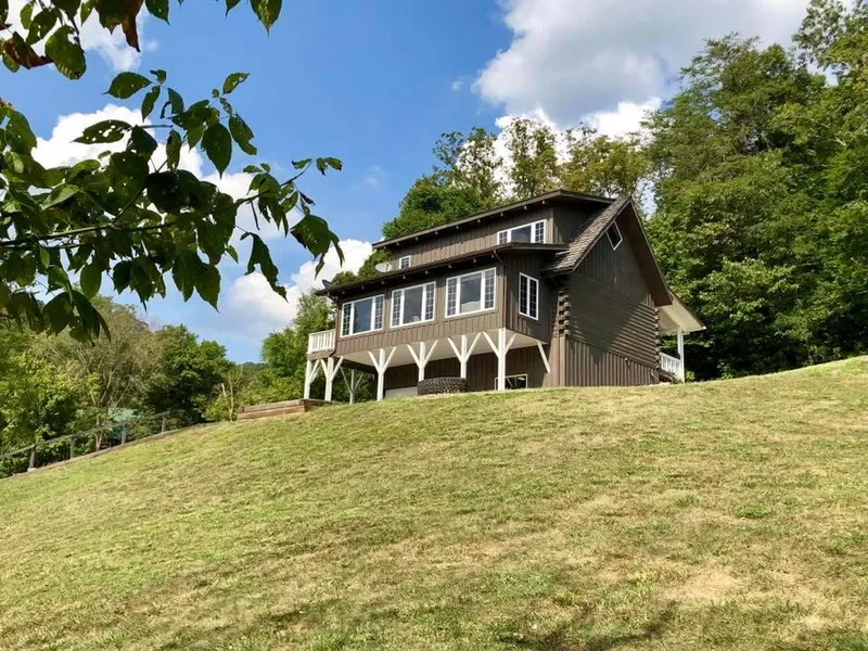 MLS103944---435 Big Run Road, LeRoy Jackson County- Absolute one-of-a- kind log home overlooking 37 acre lake with 300 feet of waterfront on 1 acre+\-. This custom log home includes whitewash interior log finish and an open concept floor plan that includes kitchen (farm sink and granite counter tops), dining room and family room (windows looking out over lake). Also on main floor is master bedroom and bath (shower). Home offers loft area, which overlooks main floor, that includes area for 2 additional bedrooms and one full bath (claw tub). The walk-out basement has home gym (gym equipment sold with house), laundry, shower and boat garage. Other bonuses include glassed in rear porch (overlooking the lake), covered front porch, boat winch, rear lower patio, excellent water well, detached equipment shed and DSL internet service availability. Located 10 miles from I-77 and about a mile from 2,800 acres of public hunting land. Living at its finest.... immaculate log home, great location! $269,000