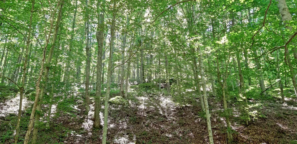 About 80% of the land is wooded, with the rest being in old fields. The woods are mainly red oak, tulip poplar, hickory and some white oak and pine. This property has not been timbered recently, but there is probably not much marketable timber on it now. The timber rights DO go with the property, which is not always the case in West Virginia. The property is mainly sloping to hilly, but there are a couple of nice flats on the property that would make a nice cabin site or possible building site.