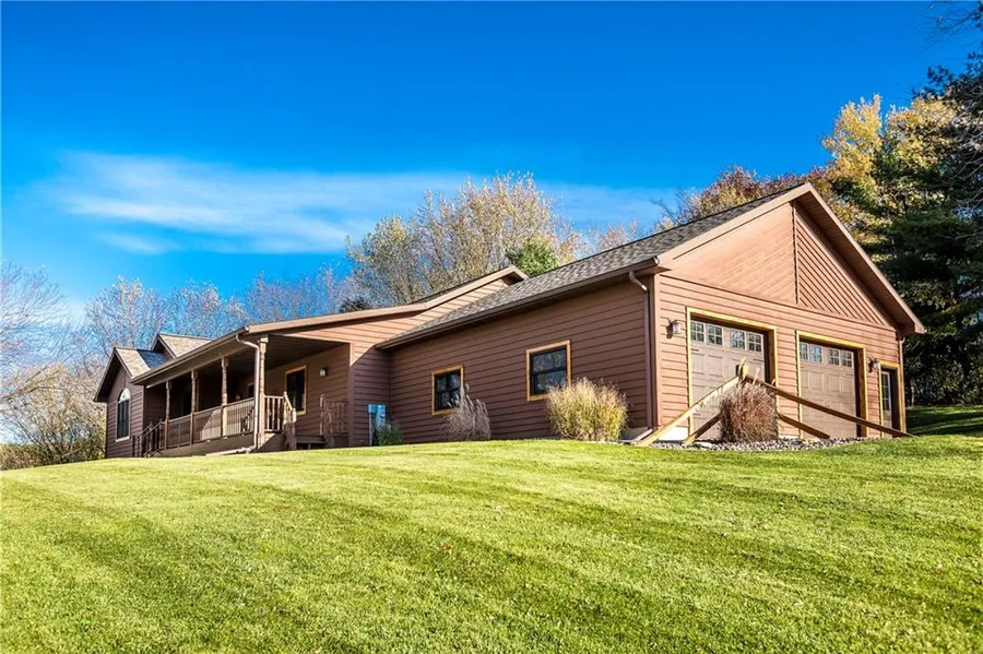 West of Black River Falls- Beautiful 3 bdrm, 3 bath home with attached 30' x 30' garage sitting on 5 acres, plus 30' x 40' heated and finished pole shed garage. Master suite with walk-in tile shower and a jetted tub plus a walk-in closet. Offered at $339,500.00.