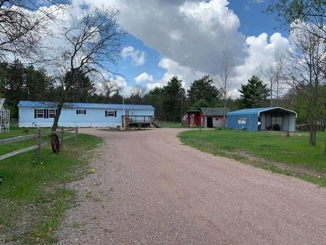 Edge of Merrillan on 3.39 acres with a 1997 single wide mobile home, 2 bdrm, 2 bath with all new flooring, metal roof, new kitchen appliances are included, new well & septic in 2019. Carport, front and back decks, fenced in yard and down the road from Lower Lake with a public beach.