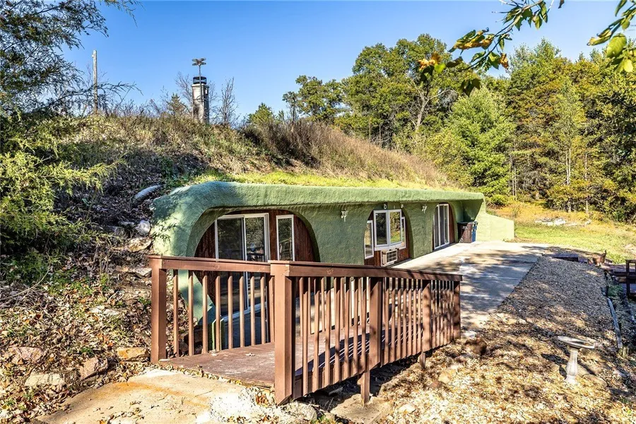 Hidden in Plain Sight - an Earth Home Retreat! Discover a truly unique property nestled on nearly 12 acres of privacy and beauty. This earth-sheltered home blends modern comfort with natural surroundings, offering energy efficiency and peace of mind. Inside, you'll find two bedrooms and two bathrooms with recent updates throughout - including a refreshed kitchen with stainless steel appliances, LVP flooring, and stylish finishes. The living room is perfect for entertaining, featuring a projector screen, built-in entertainment system, wet bar, and cozy wood fireplace. Step outside to explore your 11.93-acre playground, complete with direct ATV trail access and endless opportunities for recreation or relaxation. Whether you're seeking a hidden getaway, a nature-lover's dream, or simply something one-of-a-kind, this property delivers.