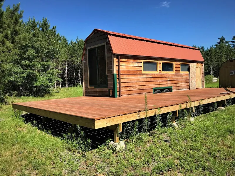 On the ATV trail! Here is the base camp situation you have been looking for. Plenty of room to stay and store the goods. Enjoy 4.79 acres including an 11 x 28 movable garden shed and a framed in tiny house on wheels measuring 9 x 30. Across the road from County forest too! Hunting, fishing and recreation galore! All this just minutes from I94 Millston exit. Come and have some fun!