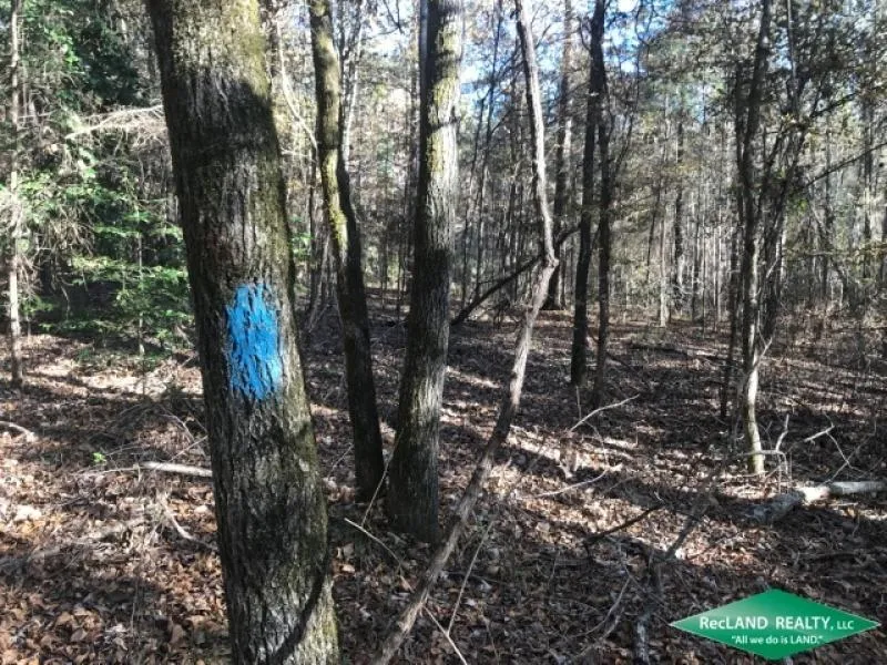 This tract is a mixed natural stand with pine along the higher ground on east side where the road frontage is and hardwoods as the tract gets lower toward a creek bottom to the west.