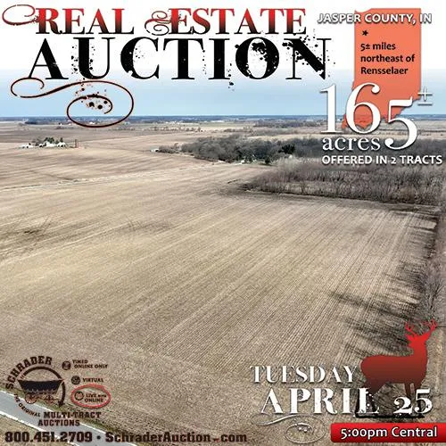 From Rensselaer go north out of town on US 231 for 1 mile to CR 300 S (Amsler Rd.). Go East on 300 S for approximately 4 1/2 miles to Tract 1 on the north side of the road. To Tract 2, go back west .3 mile to CR 125 W and go north on 125 W for 1 mile to the lane on Tract 2 on the east side of the road.