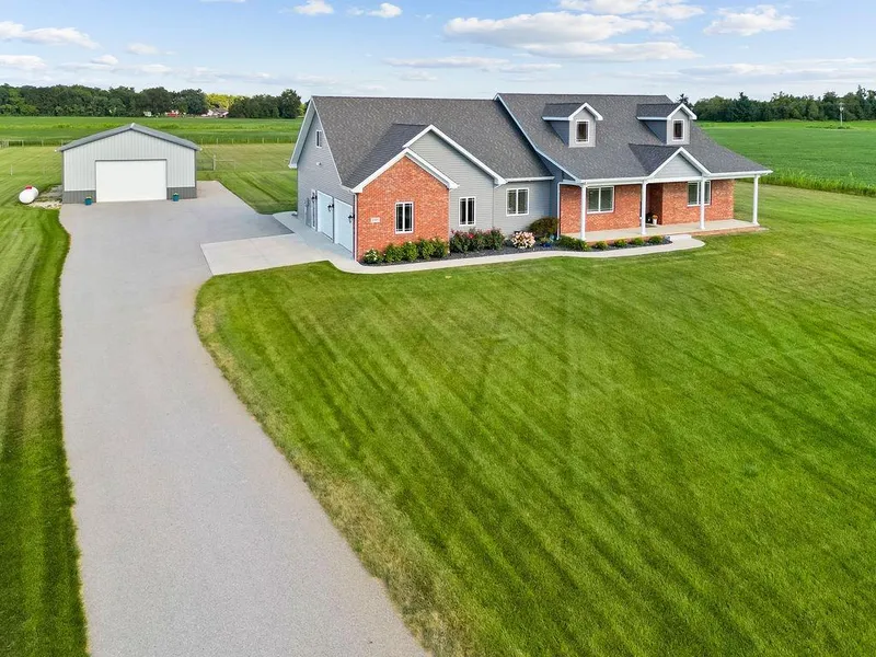 This STUNNING ranch is BETTER than new - on 3 country acres w/ a POLEBARN! Covered porch welcomes you into gracious foyer and large living room. Open concept flows into to gorgeous gourmet country kitchen with stone fireplace and HUGE island . From here, access the covered patio w/additional pergola & impressive country views. Massive laundry/utility room features expansive counter tops, sink, country views, & access to covered patio. Main bedroom suite offers large custom tile shower, walk-in closet, & more country views. Two additional large bedrooms, a full bath, a powder room, &custom built-ins throughout complete this floorplan. (9' ceilings throughout!) Attached garage offers stairwell access to poured concrete crawl AND an unfinished bonus room above the garage bays. Paved drive leads to 30x40 pole barn & fenced back yard. Sprinkler system keeps this manicured lawn looking beautif...