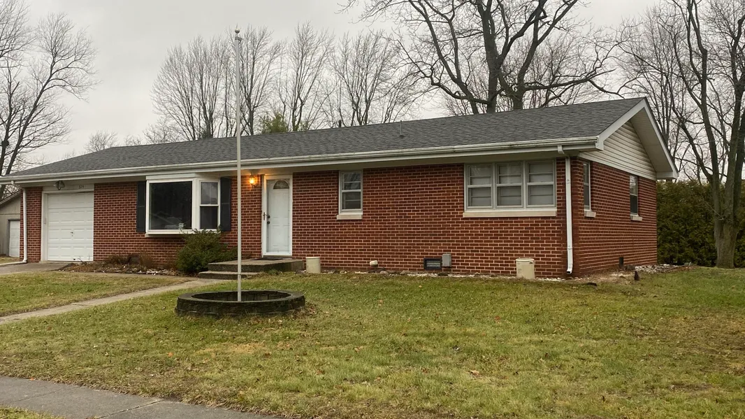 One Level Living in this Beautiful Brick Ranch! This well maintained home sits on a Large corner lot in town close to shopping and more. Big rooms throughout with hardwood floors in the bedrooms. Sit out on the backyard patio with privacy from the mature landscaping trees to the rear of the lot. Plenty of extra storage space in the shed with overhead door. High efficiency furnace an AC recently replaced in last 5 years. Hot water heater replaced in 2024. 1.5 car attached garage with built in work bench. Come check out this cozy, convenient home Today!
