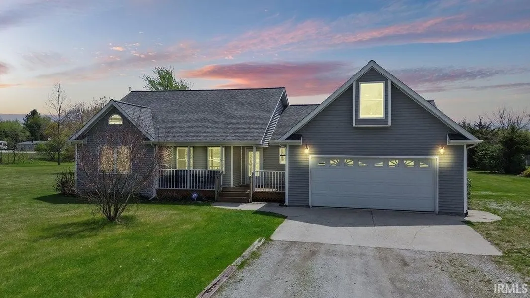 This is an incredible opportunity to own a charming home with a 5-year-old roof, furnace, and well! Don't miss out on this striking 3-bedroom, 2-bath split floor plan, perfectly positioned on a generous 1.25-acre corner lot in the countryside, yet conveniently located off State Rd 49. The yard is partially fenced! Step inside to the main living area, designed with an open concept layout featuring soaring cathedral ceilings and a welcoming gas fireplace that creates a warm atmosphere. The master suite is a true highlight, equipped with elegant tray ceilings and dual closets conveniently located in the master bathroom, which boasts a luxurious whirlpool tub and a separate shower. The bonus room above the garage is a fantastic asset—ideal for a home office, entertainment space, or additional storage. Plus, you'll appreciate the convenience of a 2-car attached garage and an extra shed outside for even more storage. THIS HOME IS READY FOR YOU TO CALL IT YOURS—DON'T WAIT!