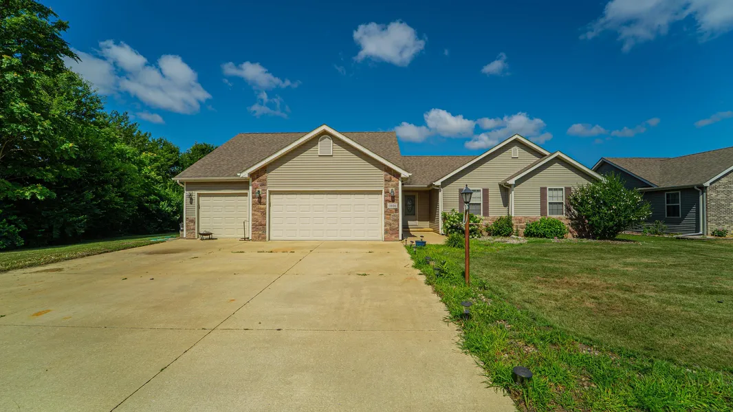Step into main-floor living with this spacious 3-bedroom, 2.5-bath ranch. The expansive kitchen is a culinary dream, boasting granite countertops, stainless steel appliances, an oversized pantry, and a central island with a prep sink--perfect for both everyday meals and entertaining. The living room features soaring ceilings and a cozy fireplace framed by custom built-ins, creating a warm and inviting atmosphere. The main bedroom offers a private ensuite, providing a serene retreat. Additional highlights include a finished laundry room, a spacious 3-car garage, and a versatile 3-seasons room ideal for relaxation or hosting guests. This move-in-ready home combines comfort and style, offering an exceptional living experience.