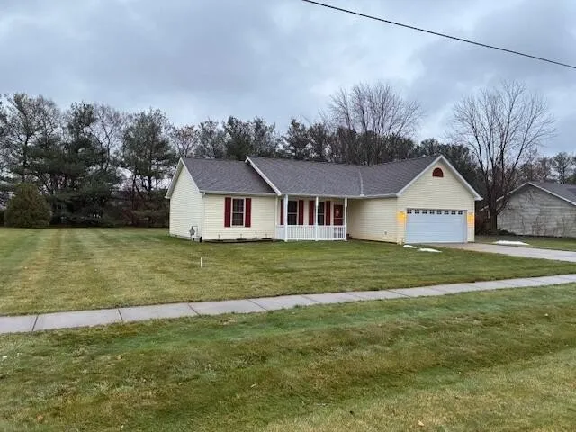 Move in ready ranch with 3 bedroom and 2 full bathrooms. Enter into this cute ranch home from your covered front porch into the foyer with tile flooring and a coat closet. Inside you will find vaulted ceilings and open concept living room that is open to the dining room area that has a new sliding glass door that leads out to the new deck. The eat in kitchen features ample maple cabinetry, tile flooring and all the appliances stay with the home. There is also a ton of natural light with all the large windows. Down the hall are the 3 bedrooms and bathrooms. Bedrooms 1 & 2 are nice sizes and feature ceiling fans, carpeting and are close to bathroom #2. There is a spacious primary bedroom that has a walk-in closet, carpet, ceiling fan, and attached bathroom. In the primary bathroom you will find a whirlpool tub and standup shower. There is quite a bit of storage closets and also storage in the garage attic. 2.5 attached car garage with a newer storage shed on this 1/2 acre lot. Recent upgrades are roof, tankless water heater, composite decking, sliding glass door.