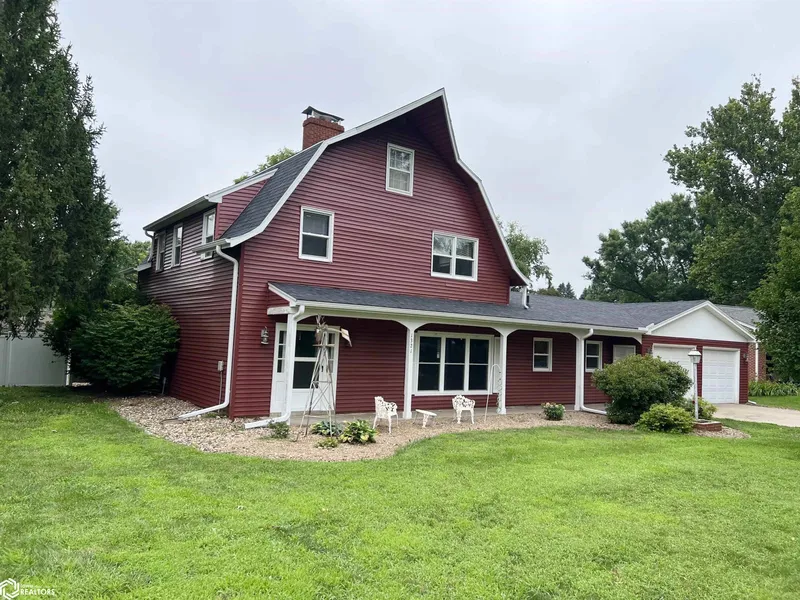 Unique home, once a barn, offers over 2,600 sq ft of living space on 2 levels in SW Newton on a lot just over 1/3 acre. Features an updated kitchen with appliances, counter & stools, opening to a large dining area with a wood fireplace. Spacious living room with a wood fireplace and an adjoining bonus room leading to the backyard. A bedroom or exercise room with a 3/4 bath featuring heated floors, laundry, and a 1/2 bath are located next to the kitchen. The upper level boasts 4 nicely sized bedrooms (3 with hardwood floors) and an updated bath with a large shower and bubbler tub. Outside, enjoy a patio, wood burner, and shed. Recent updates include a new central air unit in 2024, a new roof and gutters in 2023, and most windows replaced in 2024-2025. All this, at a price you can afford!