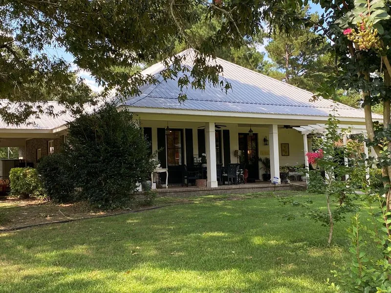 Sunroom could be a third bedroom; the walls are Hardy board with scored concrete floors. Kitchen countertops are granite tiles. Beautiful open plan with many custom details. Beautiful hickory hardwood throughout the home. Custom cabinetry and crown molding. Lots of extra storage. There is a gorgeous custom piece from Burton's Jewelers downtown Laurel that is the centerpiece of the home. This piece will remain with the home. A large shop behind the home with a separate room that would be a great "Home Schooling" room. There are 75 acres with a stocked pond. The acreage is designated a "Tree Farm" which gives a tremendous tax break to the owners. The front porch which spans the front of the home is like an outdoor room with width of 16 feet.