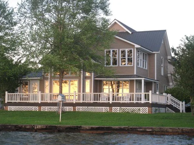 This spacious 4B 3.5bath lake estate has a spectacular view of beautiful Lake Eddins from every window. This 2 story home also consists of 2 dens, dining area, kitchen, sunroom, office and an additional 500+ SF finished attic space that is climate controlled. This uniqure home has an 860 SF 3 car garage that is climate controlled. The property is located at the end of a dead end street and is surrounded by water on three sides. Fishermen will enjoy great fishing from the 30'x60' boat dock which extends over 12 to 14 ft of deep water. The boat dock is equipped with a boat lift and has a 200SF fully enclosed storage room. This estate will impress. Lake Eddins is an affordable, casual gated community and wildlife preserve, centrally located, just 8 miles off I-59. Area golf courses nearby. 20 minute drive to the new Bok Homa Casino.