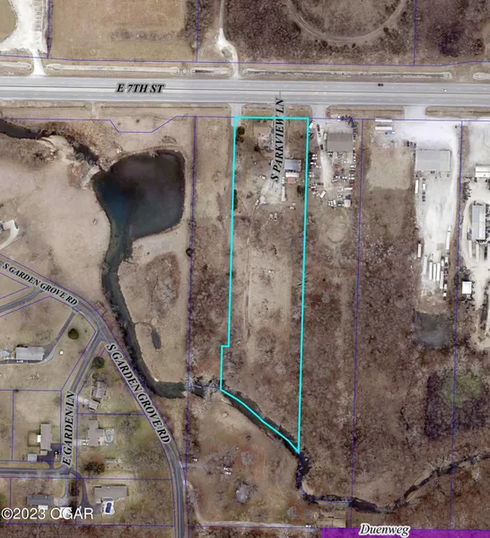 Excellent East 7th commercial property approx. 1 mile West of the 249 bypass. The property has an older 3 bedroom, 1 bath house with heat and air, perfect for office space. An Oversized 1 car detached garage and a 1500 SF shop/warehouse lie nearby. Includes approximately 300 feet of Turkey Creek frontage and a small, wooded area and along the South line.