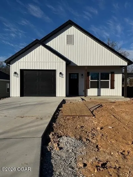 New Construction Home- Royal Heights/Joplin, MO. Step into modern comfort with this brand-new 3 bedroom, 2 bathroom home located in the desirable Royal Heights subdivision of Joplin, Missouri. 1335 sq ft of thoughtfully designed living space ,Cathedral ceilings in the living room, 9-foot ceilings throughout. Custom-built cabinetry, walk-in pantry, functional mudroom and Primary Suite with custom en-suite bath & walk in closet. Covered front porch and back porch--perfect for relaxing or entertaining, 1-car garage. This home blends clean, modern finished with a warm, inviting layout- ideal for everyday living or entraining guest. Every detail was carefully selected to offer both style and comfort.