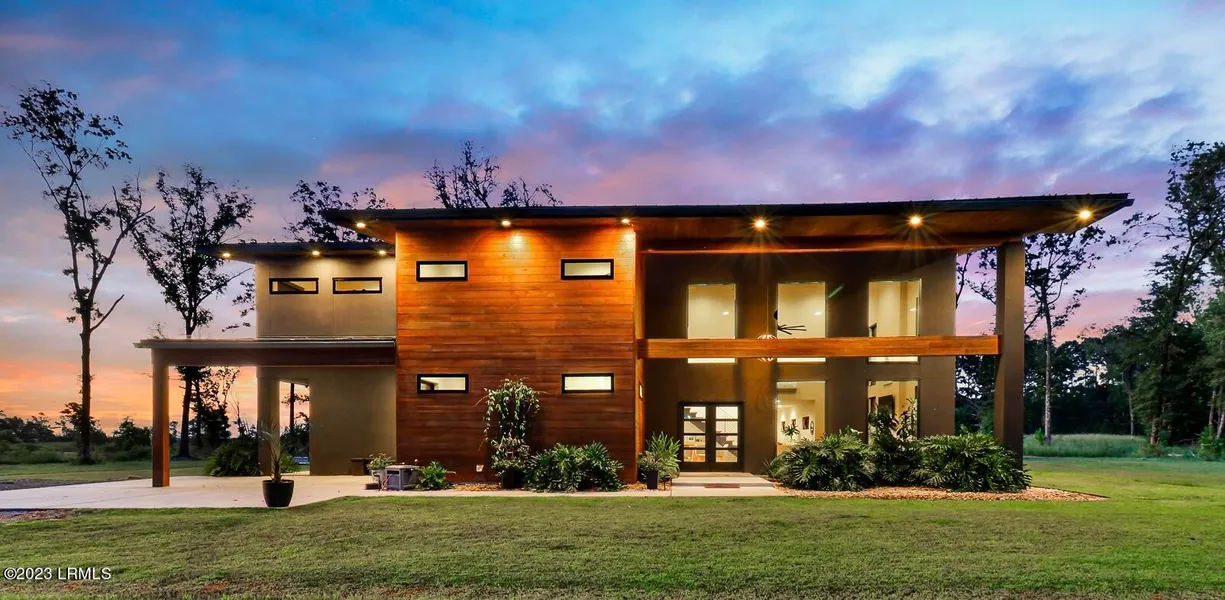 This bespoke contemporary home sits among 43 ac of quality waterfowl impoundments, barrier levy's, stocked bass ponds, acres of gorgeous untouched hardwoods, a 0.5mi frontage along the marshes & estuaries of the Broad River. 6 Miles from I95, between Charleston and Savannah, & minutes from the South's fastest growing coastal towns; Bluffton & Beaufort. The location offers higher & better use potential, no conservation easement, no restrictions and unmatched potential. Whether you're seeking a serene retreat, a visionary development or a combination, this property provides the canvas for your dreams to take shape. Come experience the allure.